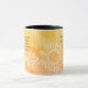 Ett kristet inspirationcitat kaffe mugg skildrar en bön och en uppmuntrande skript på en abstrakt vattenfärgsdesign med enkla vita solblommor och en gult- och orange bakgrund. Det innehåller en del av de Beatitudes som Jesus talade i Sermon på berget och som står i Bible Verse Matthew 5:8, "Blsed are the PURE in HEART, för de kommer att se Gud." All text kan anpassas till valfri information.