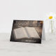 Kortet för känsloladdade citattecken skildrar Bibeln sitta på sten och har Bible Verse Matthew 7:24-25, i Jesus ord: "Därför är alla som hör dessa ord av mig och omsätter dem i praktiken som en klok man som byggt sitt hus på sten, och regnet härjade, översvämningarna kom och vinden blåste och slog på det huset. inte falla, för den grundades på sten." Insidan av hälsning kan anpassas.
