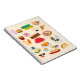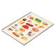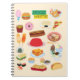 En vektorgrafik med olika maträtter som karamellglass, hamburgare, friterade räkor, gyoza, pizza, pommes frites, korv, donut, korvpå kakor, gelé, ramen, lasagne, sundae, glass, muffins, nachos, mochi, sushi, smörgås, risboll, och taco.