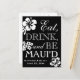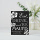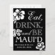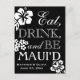 Denna svart-vita moderna design säger "Ät, drick och bli Mauiad". Anpassa detta spara-datum-vykort med detaljerna om ditt kommande bröllop. Jag har denna design tillgänglig i en mängd olika färger, om du inte ser den du letar efter, skicka mig ett meddelande. Låt mig veta om du har frågor.