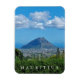 Ett vackert foto av moln över ett berg i Mauritius, tryckt på en kylmagnet i souvenir.