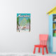 Illustrerad karta i Mauritius i en vacker vintage eller i stil, med en havslandning flygplan på en vacker strand.
