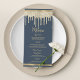 Denna lyxiga moderna minimalistiska mauve blue och guld glitter droppar gräns Bröllop Menu-inbjudan inspireras av det enkla och eleganten var, men med subtila antydningar av modernt inflytande. Den har en glam guld glitter som droppar gräns i en enkel mörk blått bakgrund. Den här klassiska och lyxdesignen blir en stor slå med alla dina gäster. Alla designer skrivs ut.