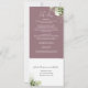 En allt-i-ett mauve bröllopsinbjudan med rustika botaniska grönska blad och elegant typografi. Inbjudan inkluderar ett RSVP-kort som kan klippas av och detaljer om gästinformation. Designad av Thisisnotme©