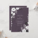 Denna design har en slående kontrast mellan en rik mauve bakgrund och känsliga vita botaniska element. Eleganta vita anemoneblommor och små bladgrenar skapar en sofistikerad, dyster estetik som är perfekt för en sen säsongs händelse. Den djupa purpurpaletten kompletteras med mjuka grå blad och kolaccent för en modern men tidlös look.