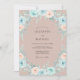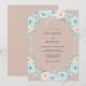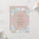 Denna design har en mjuk palett av dammig rosafärgad, blekblå och mintgrön färg. Handmålade akvarellrosor och frodig eukalyptusbladverk skapar en romantisk atmosfär. De känsliga botaniska elementen är arrangerade i ett kaskadliknande mönster mot en dämpad bakgrund. Det frammanar en känsla av tidlös elegans för en säsongsbetonad tillställning.