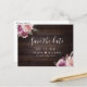 Konstruktion av botaniska blommigtar i dammsug lila, mullbär, dammig ro och persiko färg på bakgrunden av träbete i mörk, med modernt skript och text, elegant och snyggt, underbart spara datumkorten för botaniskt trädgårdsbröllop i fall och vinter. Visa alla matchande delar i samlingen.