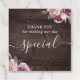 Konstruktion av botaniska blommigtar i damm lila, mullbär, dammig ro och persiko färg på mörk lada, modernt skript "tack" med ett par namn och händelsemedag, modernt och elegant, underbart personlig bröllop gynnar märkre för giftigt botaniskt trädgårdsbröllop i höst och vinter. Visa alla matchande delar i samlingen.
