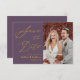 Mauve Lila Elegant Guld Skriver Modern Photo Minimalist Bröllop spara datum inbjudningskort. Låt er familj, vänner och kolleger veta att ni har fastställt ett datum för ert bröllop firande med detta elegant, snyggt och det moderna bröllop spara datum-inbjudan. Alla texterna är i förväg ordnade så att du enkelt och snabbt kan anpassa dig med dina egna detaljer.