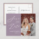 Mauve Lila Elegant Script Bröllop spara datum Meddelande Vykort