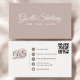 Ett förfinat och modernt affärskort för skönhetsvårdande professioneller. Med ett vitt skript med elegant parat med en minimalistisk layout innehåller den här designen en funktionell QR-kod och monogram på baksidan. Perfekt för hår-, skinn- och nagelartister som söker en chic som ändå kan användas.