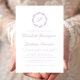 Den här inbjudan från elegant bröllop har en auve-skript med monogram som inledningsvis omges av en botanisk andedräkt på en vit bakgrund. Namn visas i ett stort skript, medan resten av texten visas i klassiskt serif-teckensnitt. Kortets baksida är en solid duk.