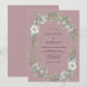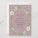 Denna design har en frodig akvarell botanisk arrangemang mot en mjuk mauve bakgrund. Konsten inkluderar salvia grön eukalyptus lövverk, felfria vita anemone blommor och små blå blommor. Dess lugna, luftiga estetik är perfekt för ett romantiskt vår- eller landsbygds evenemang. Den handmålade stilen ger en mjuk, naturlig känsla till konsten.
