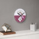 Mauve Rosa Uggla Monogram Namn Rund Klocka
