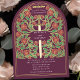 Set the tone for your medieval fantasy wedding with a bold arch invitation design—a grand sword surrounded by florals, and gold accents against a mauve background. Perfect for couples dreaming of an epic, romantic celebration. Make your love story legendary from the very first glance! NOTE: the gold featured in this design is NOT real foil.