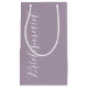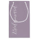 Presentera era dina gåvor från bröllop med den här lilla presentväskan som matchar bröllopsfest färg-schemat för ett trendig mauve färg, tillsammans med ett vitt, stiliserat skript som lyder "Bridesmaid".