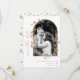 Ett meddelande från söt bröllop spara datum som innehåller ditt favoritfoto i ram i guld-bågen, omgivet av mauve och rosa vattenfärgsblommor och löv av grönt. "spara datumet" står i guld med det moderna kalligrafteckensnittet placerat vertikalt på kortets lämnat sida. Anpassa med dina detaljer i rosa och guld. På andra sidan finns en mönster av vilda blommor.