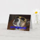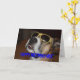 Max en hund med solexponeringsglas på skjutit tätt upp på ett födelsedagkort.