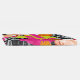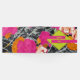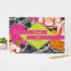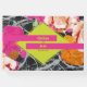 Gultens diamantform över rosans orange och persika modern blommigt med mörkens marblekna utformning. Namn i nybörjare gult över shock rosa. Återstående text är svart.