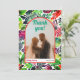 Tack vare det klara och livliga bröllop-kortet visas en maximalistisk utformning med färgstarka tropiska löv. Parets foto går i centrum och omges av en elegant ram med en orange av snyggten. Bakom bågen tillför en mönster som fångar tropiska löv i skuggor av grönt, magentans lila och vibrerande orange en aning tropiska paradis. Kortets baksida fortsätter på samma gång och mönster, tillsammans med det hjärtliga "Tack"-budskapet, som skapar en sammanhängande och visuellt bedövande utformning som lämnar ett bestående intryck på gästerna i bröllop.