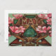 Månad i maj. Zodiac-tecken Gemini. Snygg vintage Art nouveau-astrologikonst, med Art Deco-inflytande, publicerad som vykort 1911. Mycket färgstark med födelseblomman, framväxande födelsesten, stark rosa och grönt färger och blockera brev.