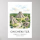 Mayan Travel Art Print, Chichen Itza Pyramid, Palm Poster