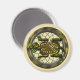 En gammal Mayan-symbol som visar en sköldpaddsliknande varelse som texturerats i grönt och guld metall, sitta på ett metall-nät som hålls av en metallisk ring i uttorkad, grönt och guld metall. Perfekten för älskare av gammal Mayan, Aztec och mexikansk konst.
