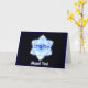 Glöda, plasma-något liknande, Magen David (davidsstjärna) med Mazel Tov! (Lycka till!) i hebréisk och engelsk transliteration på en mörk bakgrund.