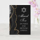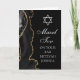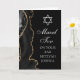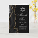Elegant svart och guld agat dekorerar sidan på detta moderna anpassade Bar Mitzvah-kort. Mazel Tov! Din sons namn är skrivet i vacker formell skrift under Davidsstjärnan. Perfekt för en chic, stilfull judisk familj som firar sin pojke som kallas till Toran.