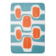 Retro Bath Mat - Retro Atomic Age Mid-Century Modern Print in Vintage Blue and Orange. De här mattorna skyddar inte bara badrummet golv, utan tillför lite modernt stil och färg i mitten av århundradet. Vår ursprungliga utskrift finns också på duschgardiner och andra hemdekorvaror.