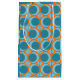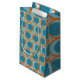 Denna presentsäck har en modern utformning av öppna orangar med gedigna tealcirklar som löper över mönster med lodrät linjer och orange vågrät linjer på en fält av teal.