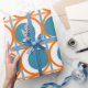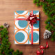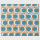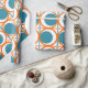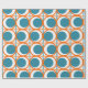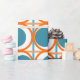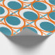 Detta papper har en modern utformning av öppna orangar i mitten av århundradet, med solida tealcirklar som löper över mönster med teal lodrät linjer och orange vågrät linjer.