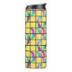 Detta termiska flaska har en modernt utformning av halvseklet måne uppdelad horisontellt i tre färg, rosa, blått, lavender eller skalbagge, uppdelad i två delar och spridd på ett nät med gult bakgrund. Om du tycker om designen men vill ha ett annat färg, säg mig.