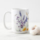Add a splash of color to your morning coffee break with this floral watercolor art print wall mug Patterned with a cluster of wildflowers, lavender and wheat grass to personalize with your name. Your choice of styles and sizes.