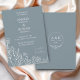 Gråblommor kallas bröllopsinbjudan med vismisk blommigt inslag. Det är perfekten för dem som har boho bröllop, rustik bröllop och mycket mer! Denna inbjudan till den bohemiska chicen visningar ett utförligt botaniskt teckning mot ett fast färg. Ditt namn, bröllop-datum och evenemangsplats finns i mitten i en blandning av romantiskt typsnitt. Baksidan har ett monogram för blommigt som omfattar initialer, namn och datum för händelsen. Den här inbjudan att bjuda in till våra "Meadow Flowers" är en del av vår samling med en rad olika produkter som samordnar varandra. Finns i olika färg: sirocco grönt, blått grått, terakotta, persika, svart och vitt.