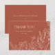 Skicka ett hjärtligt meddelande till dina gäster med det här vackert designade Bröllop-tackkortet för skuggblommor. Det här kortet har en delikat utformning av blommigten på framsidan, tillsammans med eleganten "Tack", ditt namn och bröllop-datum - det är en charmerande keepy från din speciella dag. Kortets baksida innehåller utrymme för ett tackmeddelande för anpassadet som gör att du kan lägga till en personlig tacksamhetsförklaring till varje gäst. Perfekt för vår, trädgårdsodling eller rostfritt bröllop är detta kort både tidlöst och tanklöst.