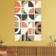 Measured Rhythm is a large-format abstract composition built from bold circles, sweeping arches, and linear dividers arranged in deliberate, rhythmic repetition. A restrained palette of muted terracotta, soft cream, charcoal, and faded olive creates a calm visual cadence—balanced, grounded, and quietly architectural. Clean edges and intentional spacing give the piece a modern, minimalist presence, while the repetition of forms introduces subtle movement and harmony. Designed to feel both structured and organic, this artwork complements contemporary interiors with a sense of order, warmth, and refined simplicity.