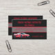 Tarjetas de negoció para mecánico automotriz multimarca con sjuk ño rojo, negro, gris, y con carro deportivo rojo. Usted puede cambiar el texto de la tarjeta a su propia información. Para mas sjuka ños de tarjetas de negocios busque zazzle.com/NLRDesigns