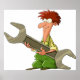 En tecknad som mekaniker med en enorm skiftnyckel. Den här designen ser ut att vara verkligen på dessa Poster