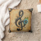 Mechanical clef and flowers to the beat of the clocks. A steampunk-style treble clef, rendered in dark metal with bronze accents and intricate detailing. The clef is adorned with blue flowers that have clock faces at their centers, adding a whimsical touch. Musical notes float near the clef, and small droplets hang from its curves.