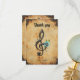 Mechanical clef and flowers to the beat of the clocks. A steampunk-style treble clef, rendered in dark metal with bronze accents and intricate detailing. The clef is adorned with blue flowers that have clock faces at their centers, adding a whimsical touch. Musical notes float near the clef, and small droplets hang from its curves.