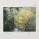 Ett vykort med ett idylliskt hus som är inkapslat i färglöst falllöv.