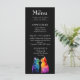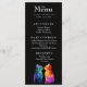 Den här menyn för strålande bröllop från Pright Yours: En insamling av regnbåge i Kärlek återger pridet och känslan av äkta kärlek. I grund, där två katter med regnbåge gshuggar söta åt varandra, firas HBT-Q+-glädjen med en djärv, ömsint anda. På framsidan visningar måltidsmarkeringen i ett rent, modernt teckensnitt mot en djup svart bakgrund, vilket gör att de pulserande accenterna kan skina. Från aptiserare till desserter, listas varje kurs med tydlig elegant och skapar varje ställe en visuell glädje. Tvärtom väntar en innerlig dikt - helt anpassade - på att ge gästerna en glimt in i kärlek-historien genom det vackert utvalda ord. Oavsett om du är romantisk, lekfull eller poetisk förvandlar den här speciella versen menyn till en keepé. Anpassadet uppifrån och upp till svan är den här menyn ett perfekt sätt att hedra ditt unika firande med färg, charm och kattdjur.