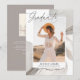 Ett enkelt och modernt meddelande om studenten innehåller ett lodrät foto på en bakgrund med vattenfärgformer och fläckar av neutralt grått. "Student" visas längst upp till lämnat, med din grad namn, skola och klassår under. Lägg till ett personligt meddelande på baksidan, tillsammans med ett ytterligare foto.