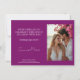 Spara datumkortet, en snygg komponent i "Fuchsia Enchantment: Watercolor Bröllop Suite", visas vågrätt och visar en lush-bakgrund med fuchsia-blomning och vy creeper. Riker av burgundy och lila sammanflätning för att skapa ett kanderande band på framsidan, rama in parets namn, signifikant datum och platsen med tidlös elegans. Om du vänder dig bakåt ger en mjuk lila en elegant kontrast. På högerna tar ett omhuldat foto av paret en central scen, som fångar ett ögonblick av glädje och anslutning. Till lämnad väntar ett rymligt område på anpassning, vilket gör det möjligt för paret att ett personligt meddelande eller detaljer. En extra budgetpost har avsatts för bröllop webbplats adress, vilket ger gästerna en modern möjlighet att få mer information eller kan utelämnas för enkelhetens skull. Vågrät är utformat så att det blir en sömlös och visuellt slående Spara datumkortet i "Fuchsia Enchantment: Watercolor Bröllop Suite", som uppmanar nära och kära att märka sina kalendrar för ett firande fyllt med botanisk skönhet och kärlek.