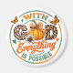 Fredlig, färglös design med en fall/höstscen med fjärilar och en pumpa. Den färgstarka inspirationstexten lyder: "Med Gud är allt möjligt". Den här utformningen är tillgänglig för en mängd olika produkter.