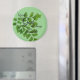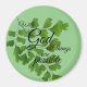 3-tums runda magnet "Med Gud all Sak är möjlig" löv på gröntens bakgrund