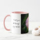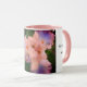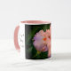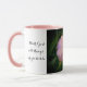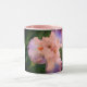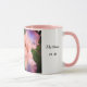 Det här kaffet mugg har ett vackert foto av en ljus persika och lavender iris och den ena sidan säger att Med Gud är allt sak möjligt och den andra Matthew 19:26