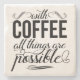 Kärlek den där morgonen så mycket koffein som vi gör? Vila din hett på den här söta stenen underlägg. Konstruktionsfunktionerna "Med kaffe är allt Sak möjligt" i svart och vitt blandat typografi stilar.
