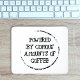 Med hjälp av stora mängder kaffe - en humoristisk textdesign om kaffe med en kaffefläck ring runt citatet.